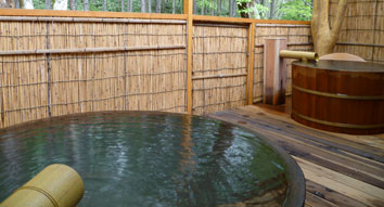 森林に差し込むこもれびの中で、ゆったりと療養泉に浸かってください。