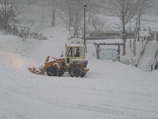 休暇村周辺の道路では、先日降った雪の上に雨が降っているため、路面がスケートリンクのように「ツルッツル」になっています!!