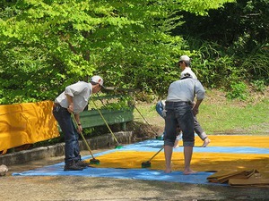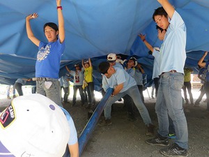 朝から雨でしたが、協力して食材運びそして朝ご飯作り。