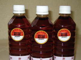 市民の森づくり事業など森林整備により、カラマツやハンノキなど間伐材の炭焼きにより採取した木酢液です。